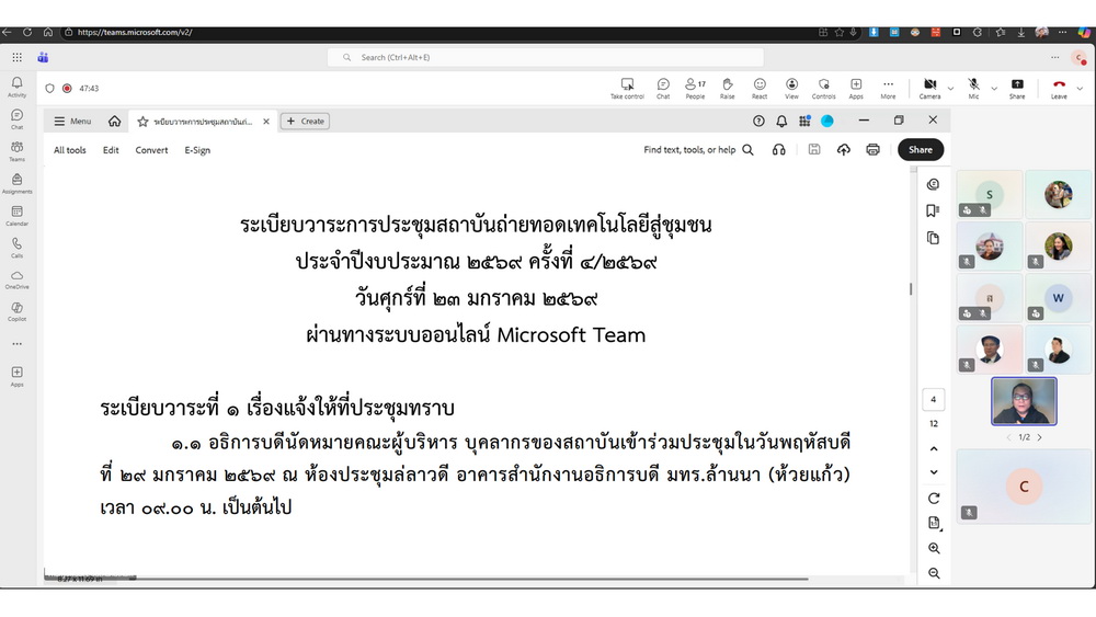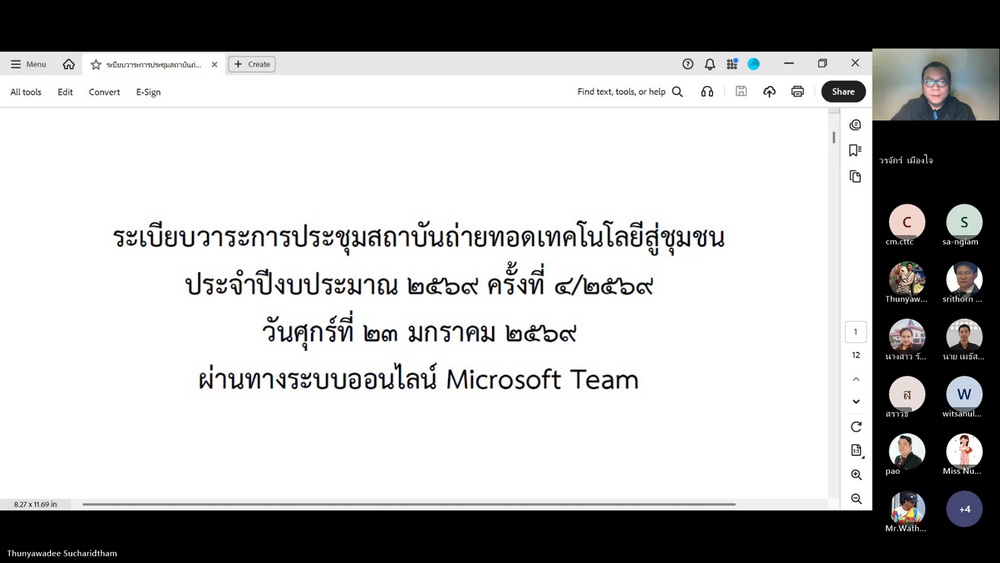 23 ม.ค.69: สถช. จัดประชุมประจำปีงบประมาณ 2569 ครั้งที่ 4 ผ่านระบบออนไลน์ มุ่งขับเคลื่อนงานบริการวิชาการสู่ชุมชน