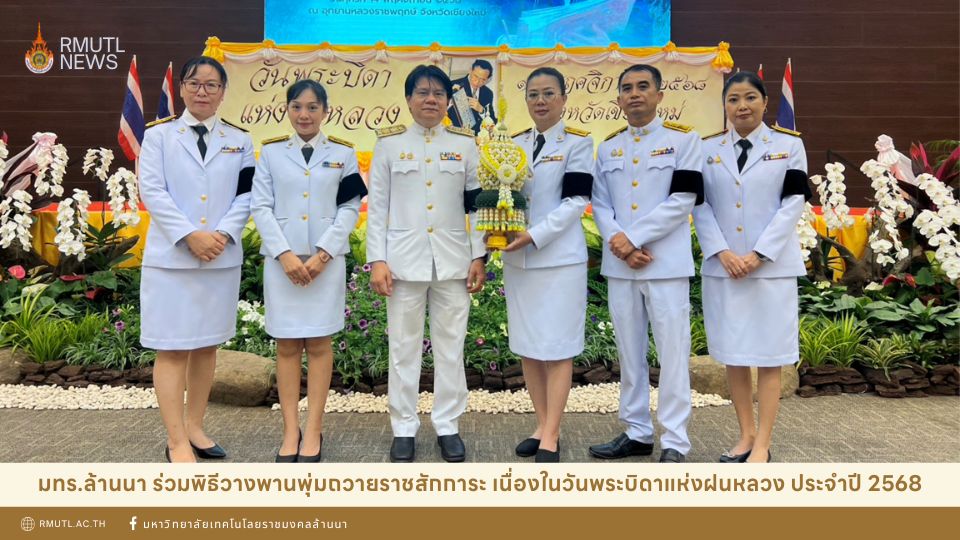 วันที่ 14 พฤศจิกายน 2568 มหาวิทยาลัยเทคโนโลยีราชมงคลล้านนา มอบหมายให้ สถาบันถ่ายทอดเทคโนโลยีสู่ชุมชน เป็นผู้แทนเข้าร่วม พิธีวางพานพุ่มถวายราชสักการะ เพื่อ น้อมรำลึกในพระมหากรุณาธิคุณ ของ พระบาทสมเด็จพระบรมชนกาธิเบศร มหาภูมิพลอดุลยเดชมหาราช บรมนาถบพิตร เนื่องในโอกาสวัน “พระบิดาแห่งฝนหลวง” ประจำปี 2568 จัดขึ้น ณ ห้องราชพฤกษ์ อาคารนิทรรศการ 1 อุทยานหลวงราชพฤกษ์ ตำบลแม่เหียะ อำเภอเมืองเชียงใหม่ จังหวัดเชียงใหม่