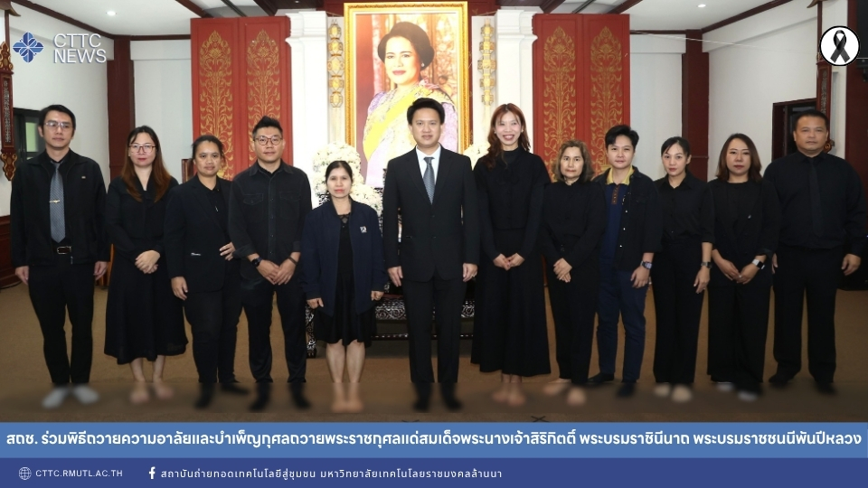 เมื่อวันที่ 19 พฤศจิกายน 2568 สถาบันถ่ายทอดเทคโนโลยีสู่ชุมชน มหาวิทยาลัยเทคโนโลยีราชมงคลล้านนา โดยการนำของผู้ช่วยศาสตราจารย์ ดร.ธัญวดี สุจริตธรรม รองผู้อำนวยการสถาบันฯ ฝ่ายบริหารและการขับเคลื่อนงานสนับสนุน พร้อมด้วยบุคลากรในสังกัด เข้าร่วมพิธีถวายความอาลัยและน้อมรำลึกในพระมหากรุณาธิคุณ สมเด็จพระนางเจ้าสิริกิตติ์ พระบรมราชินีนาถ พระบรมราชชนนีพันปีหลวง ณ ศาลาราชมงคล มหาวิทยาลัยเทคโนโลยีราชมงคลล้านนา