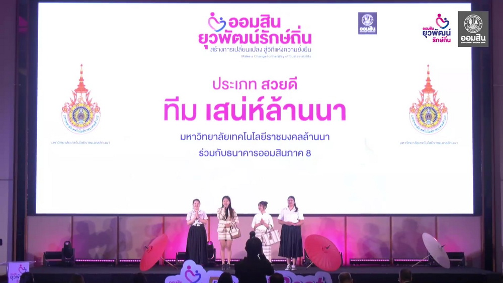 มหาวิทยาลัยเทคโนโลยีราชมงคลล้านนา (มทร.ล้านนา) ประกาศความภาคภูมิใจกึกก้อง หลังส่งทัพนักศึกษาคนรุ่นใหม่ไฟแรง ทีมเสน่ห์ล้านนา บุกเมืองกรุงฯ โชว์กึ๋นและไอเดียสร้างสรรค์ จนสามารถพิชิตใจกรรมการ คว้ารางวัลรองชนะเลิศ ประเภทสวยดี หรือ Aesthetic จากเวทีระดับประเทศ ในโครงการออมสินยุวพัฒน์รักษ์ถิ่น ประจำปี 2568