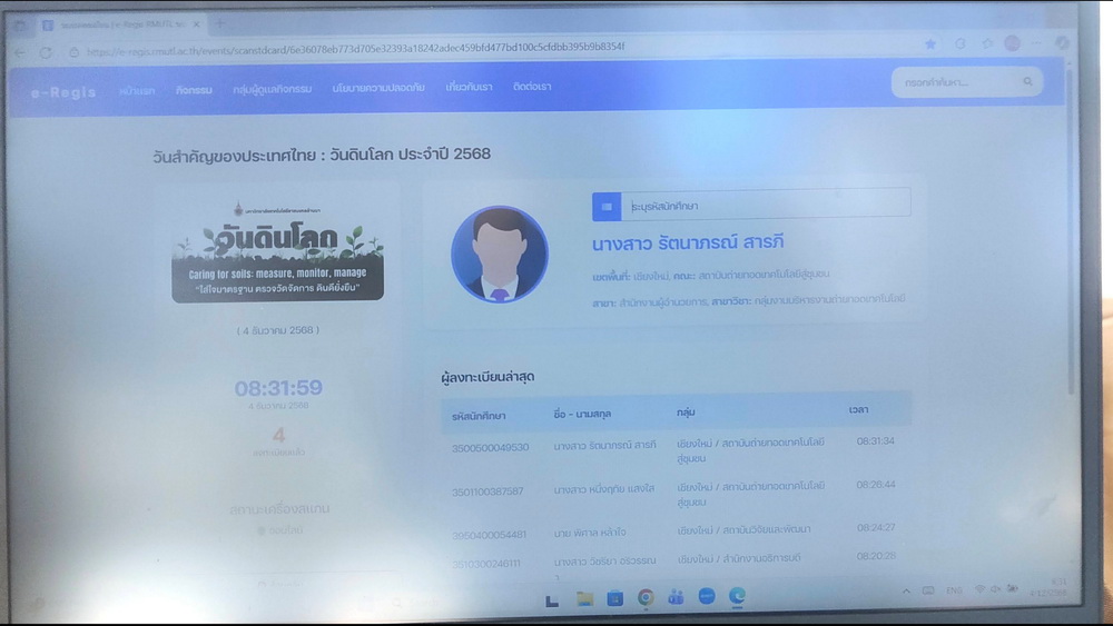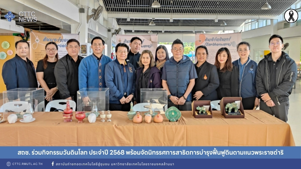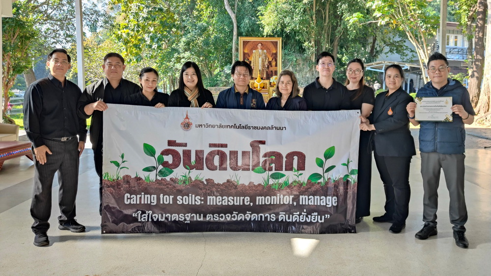 เมื่อวันที่ 4 ธันวาคม 2568 สถาบันถ่ายทอดเทคโนโลยีสู่ชุมชน (สถช.) นำโดย อาจารย์ศรีธร อุปคำ รองผู้อำนวยการสถาบันฯ ฝ่ายยุทธศาสตร์การนำไปใช้ประโยชน์ มหาวิทยาลัยเทคโนโลยีราชมงคลล้านนา นำคณะบุคลากรในสังกัด เข้าร่วมกิจกรรม “วันดินโลก ประจำปี 2568” ณ ข่วงวัฒนธรรมเวียงเจ็ดลิน มหาวิทยาลัยเทคโนโลยีราชมงคลล้านนา จังหวัดเชียงใหม่ โดยกิจกรรมจัดขึ้นภายใต้ความร่วมมือของกองพัฒนานักศึกษา และหน่วยงานภายในมหาวิทยาลัย เพื่อเผยแพร่ความรู้ ความเข้าใจเกี่ยวกับทรัพยากรดิน และการนำดินไปใช้ให้เกิดประโยชน์อย่างยั่งยืนตามแนวพระราชดำริ