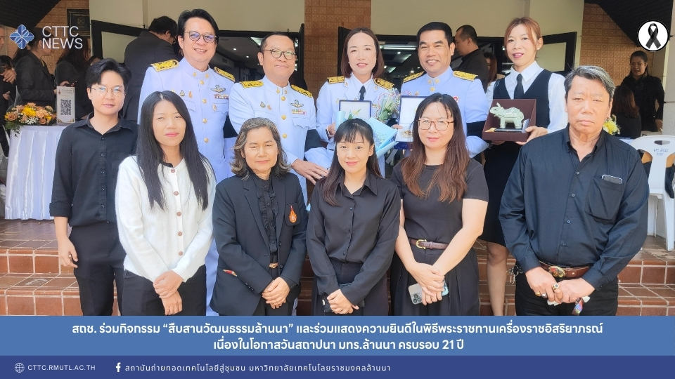 เมื่อวันที่ 16 มกราคม 2569 สถาบันถ่ายทอดเทคโนโลยีสู่ชุมชน มหาวิทยาลัยเทคโนโลยีราชมงคลล้านนา (สถช.) โดยการนำของ ผู้ช่วยศาสตราจารย์ ดร.วรจักร์ เมืองใจ ผู้อำนวยการสถาบันฯ พร้อมด้วย ผู้ช่วยศาสตราจารย์ ดร.ธัญวดี สุจริตธรรม รองผู้อำนวยการสถาบันฯ ฝ่ายบริหารและการขับเคลื่อนงานสนับสนุน และบุคลากรในสังกัด เข้าร่วมกิจกรรมในโครงการ “สืบสานวัฒนธรรมล้านนา” ซึ่งจัดขึ้นเนื่องในโอกาสวันคล้ายวันสถาปนามหาวิทยาลัย ครบรอบ 21 ปี ณ มหาวิทยาลัยเทคโนโลยีราชมงคลล้านนา จังหวัดเชียงใหม่