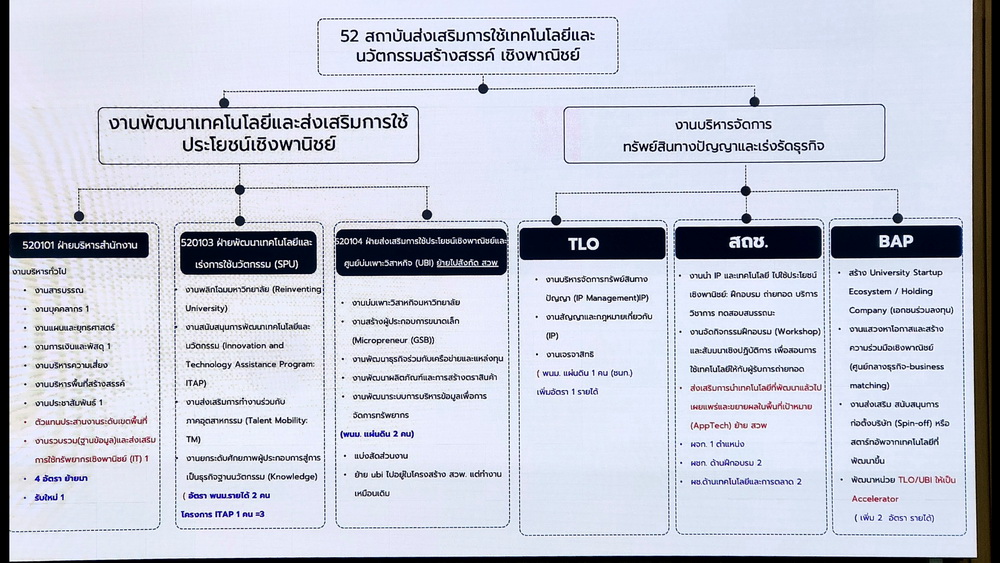 การประชุมครั้งนี้เป็นส่วนหนึ่งของกระบวนการปรับเปลี่ยนโครงสร้างมหาวิทยาลัย โดยมีแผนจัดตั้งกลุ่มธุรกิจ (Business Units) แบ่งเป็น BU1 และ BU2 ซึ่งสถาบันถ่ายทอดเทคโนโลยีสู่ชุมชนจะถูกปรับบทบาทไปเป็นหน่วยงาน TTO (Technology Transfer Office) ในสังกัด BU2 เพื่อเน้นบทบาทด้านการถ่ายทอดเทคโนโลยีเชิงพาณิชย์และเชื่อมโยงกับหน่วยงานด้านนวัตกรรม เช่น UBI, STeP (SPU), TLO และ BAC