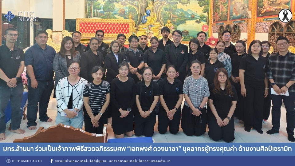 มหาวิทยาลัยเทคโนโลยีราชมงคลล้านนา (มทร.ล้านนา) ร่วมเป็นเจ้าภาพพิธีสวดอภิธรรมศพ นายเอกพงศ์ ดวงมาลา นักวิชาการช่างศิลป์ บุคลากรศูนย์เรียนรู้และถ่ายทอดเทคโนโลยีเซรามิก สังกัด สถาบันถ่ายทอดเทคโนโลยีสู่ชุมชน (สถช.) เพื่อร่วมแสดงความอาลัยและรำลึกถึงคุณูปการของบุคลากรผู้ได้อุทิศตนสร้างสรรค์ผลงานด้านการถ่ายทอดเทคโนโลยีเซรามิกและการพัฒนางานช่างศิลป์มาอย่างต่อเนื่อง