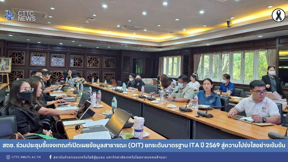 สถาบันถ่ายทอดเทคโนโลยีสู่ชุมชน (สถช.) มหาวิทยาลัยเทคโนโลยีราชมงคลล้านนา เดินหน้าขับเคลื่อนภารกิจด้านคุณธรรมและความโปร่งใสอย่างต่อเนื่อง ล่าสุดเมื่อวันที่ 3 เมษายน 2569 น.ส.รัตนาภรณ์ สารภี นักเอกสารสนเทศ และกรรมการดำเนินงานการประเมินคุณธรรมและความโปร่งใสในการดำเนินงานของมหาวิทยาลัย เข้าร่วมการประชุมชี้แจงหลักเกณฑ์การเปิดเผยข้อมูลสาธารณะ (Open Data Integrity and Transparency Assessment: OIT) ประจำปีงบประมาณ พ.ศ. 2569 ณ ห้องประชุมกาสะลอง อาคารสำนักงานอธิการบดี จังหวัดเชียงใหม่